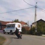 Description : Un Régis russe motard visiblement bien trop pressé va sauter une clôture et finir dans les buissons en essayant de doubler un camion. Ahahahah. Ahahahah.