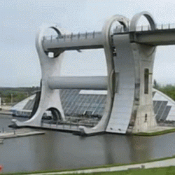 Un ascenseur à bateaux rotatif, reliant le Forth and Clyde Canal à l'Union Canal.