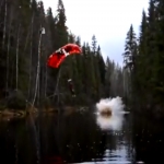 Description : Équipé d'un parachute un type (de la StuntFreaksTeam) sur une Dirt Bike va réussir un énorme saut avant de retomber dans un lac. Les joueurs de Battlefield devraient apprécier...