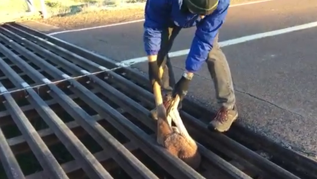 Sauvetage d'un kangourou coincé dans une barrière canadienne