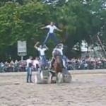 Description : Lors d'un spectacle un cavalier tente un saut assez osé au milieu de 4 acrobates et comme vous vous en doutez ça ne va pas se passer comme prévu. J'aimerai pas être le mec en bas...