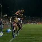 Description : Lors d'un match de rugby à XII entre Manly Sea Eagles et les Wests Tigers, l’ailier australien David Nofoaluma va réussir à placer un magnifique essai "aérien".
