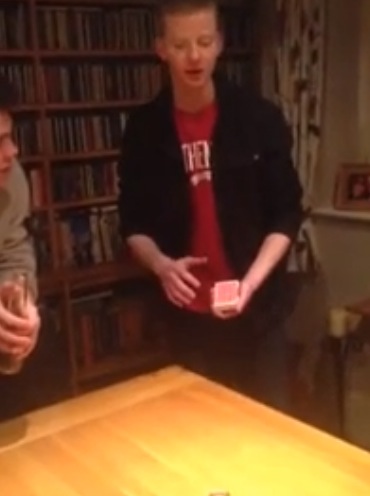 Description : Devant sa famille un mec réalise un tour de magie qui consiste à faire disparaitre un paquet de cartes.