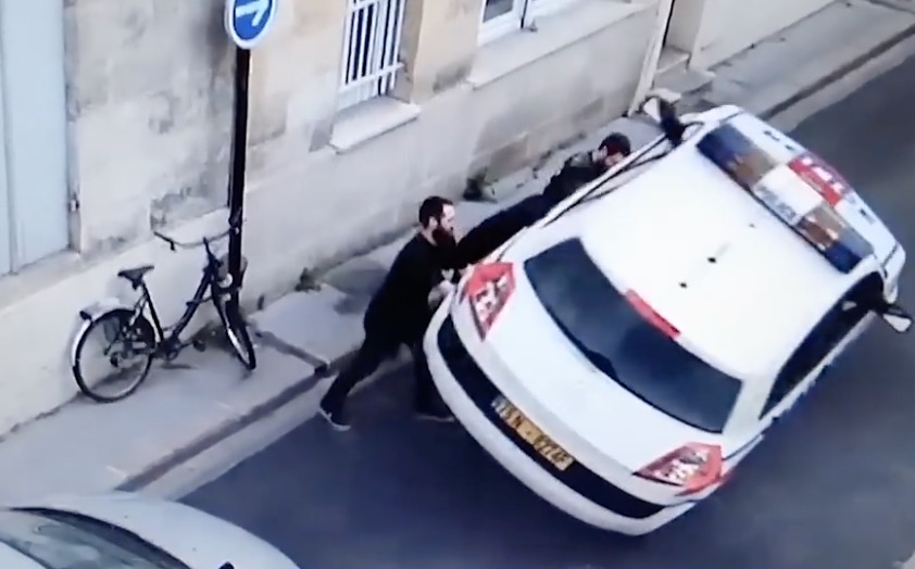 Trois casseurs filmés en train de retourner une voiture de police
