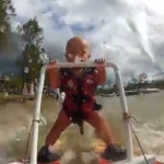 Description : Un peu de cute ou de n'importe quoi... Avec ce gamin de 8 mois tout juste qui va se faire offrir ses premières secondes de "ski nautique".