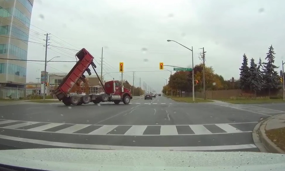 Un camion benne arrache une ligne électrique
