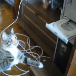 Description : Devant l'ordinateur de son esclave, un chat va s'embrouiller avec un lecteur de DVD et lui rappeler, à coups de griffes, qui est le patron.