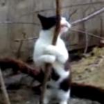 Un chat fait du pole dance