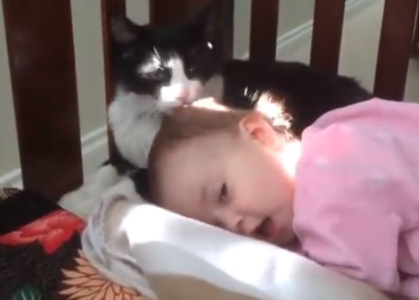 Description : La vidéo cute du jour c'est celle de ce chat qui passe le temps en lavant les cheveux d'un bébé. Et dire que dans quelques mois il l'attaquera par derrière pour le noyer dans une piscine...