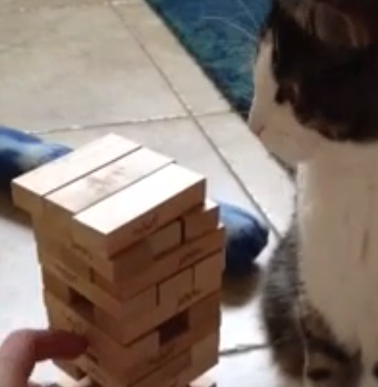 Description : Dans la série "le miens aurait tout défoncé depuis longtemps" ce chat qui gère vraiment bien au Jenga.