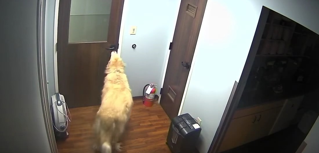 Un chien intelligent ouvre plusieurs portes pour sortir de chez le vétérinaire