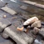 Description : Parce que courir bêtement après sa balle devenait franchement lassant ce chien a décidé de s'amuser à la poser sur l'eau pour la récupérer plus loin dans le sens du courant, pas bête le petit.