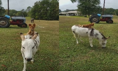 Un chien monte un âne