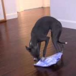 Description : Le matin de Noël, comme tout le monde un chien ouvre ses cadeaux avec beaucoup d'impatience.