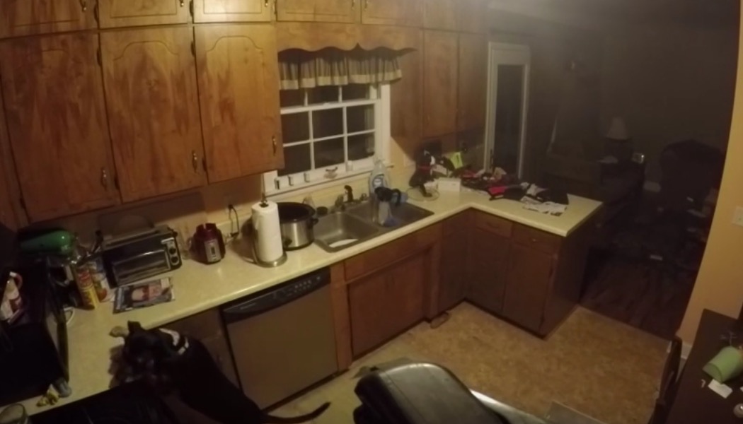 Un chien se sert dans la cuisine pendant qu'il est seul à la maison