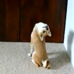 Mais non c'est pas une histoire de souplesse, c'est juste un chien surentraîné avec un cerveau tellement lourd que sa lui fait basculer la tête, mais à la fin de son entraînement, ce petit détail sera réglé: matou, resserrez vos rangs....