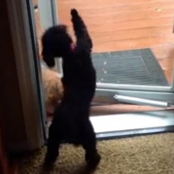 Description : Encore une vidéo cute avec ce chiot très serviable qui va ouvrir la porte pour un autre chien.