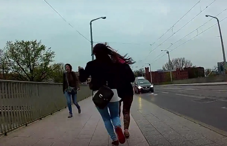 Description : En Pologne un cycliste va être le témoin d'un vol à l'arraché, il va poursuivre la voleuse et la faire tomber avec son vélo.