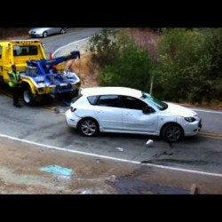 Un dépanneur défonce une voiture