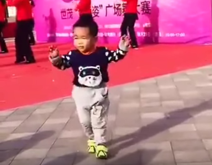 Description : Lors d'un petit concert en plein air, un enfant chinois montre son swagg avec quelques pas de danse.