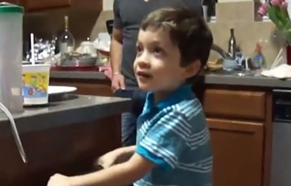 Alors que sa famille fait les bénédictions avant de manger, cet enfant va suivre le mouvement mais pas complètement.