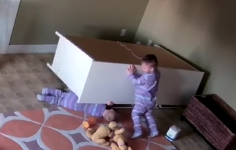 Un enfant sauve son petit frère coincé sous un meuble