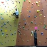 Description : En plein cours d'escalade, un gamin va tester l'efficacité et la solidité de la corde de sécurité, un essai qui va lui coûter une bonne petite frayeur. J'espère que la corde n'a rien...