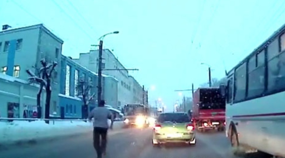 A Kiev en Ukraine, un homme a été filmé en train de se sauver d'une ambulance en pleine route.