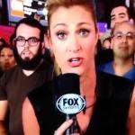 Description : Derrière une journaliste que JLBCSDP, un type s'amuse (enfin j'espère) à fixer la caméra sans bouger ou cligner des yeux. Quel talent !
