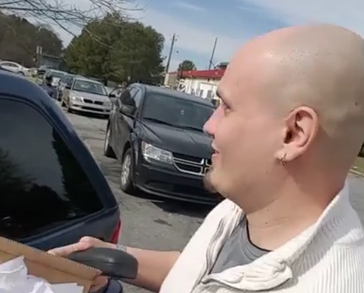 Un homme amputé des bras prend un café au drive
