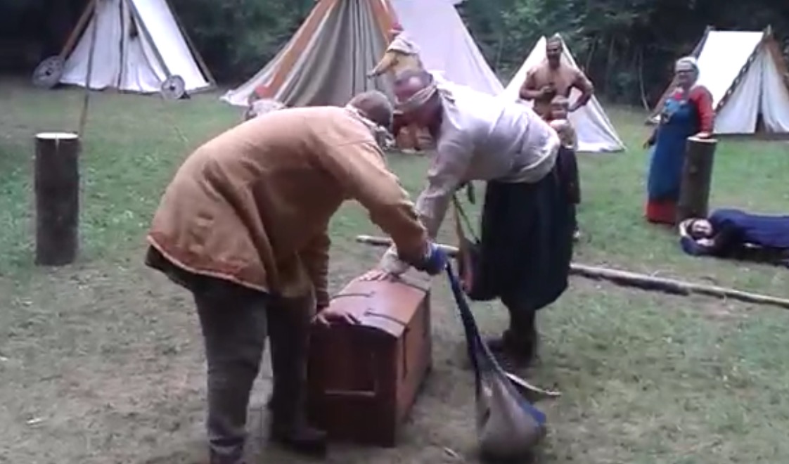 Description : Lors d'une journée sur le thème des vikings deux hommes se lancent dans un jeu traditionnel où il faut pour remporter la partie : toucher son adversaire 3 fois avec un sac tout en ayant les yeux bandés.