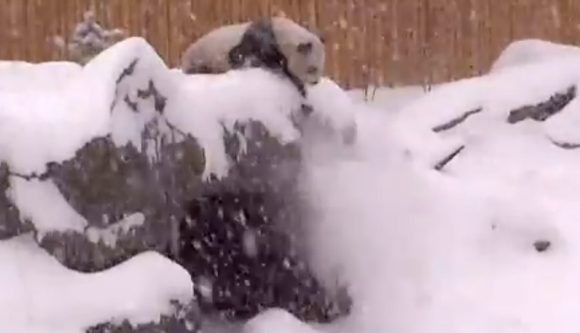Description : Au zoo de Toronto un panda s'éclate en jouant dans la neige.