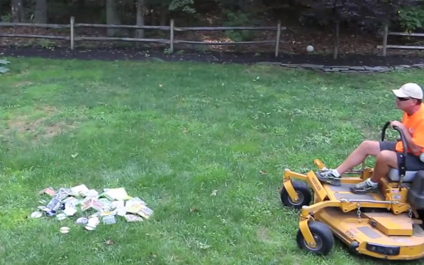 Description : Lassé de voir son fils passer toutes ses journées sur sa console, ce père de famille a décidé d'éclater sa collection de jeux vidéo avec sa tondeuse à gazon. Inutile de préciser que le joueur en question ne va pas du tout apprécier.