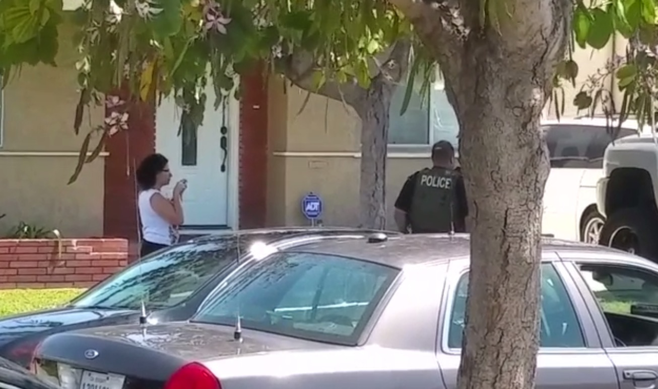 Un policier craque, attrape le téléphone d'une femme et le jette