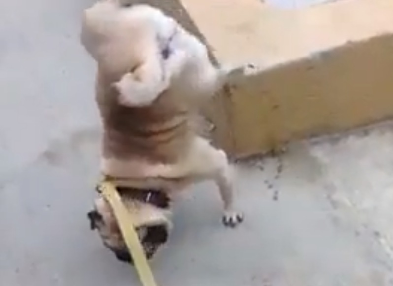 Description : Bon on avait déjà vu la même chose avec un chihuahua mais ce pug / carlin gère trop bien l'équilibre pour passer inaperçu.