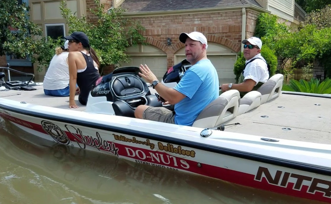 Description : Après le passage de l'ouragan Harvey, ces habitants de Houston traversent leur joli petit quartier résidentiel dans un petit bateau à moteur, on se croirait à Venise.