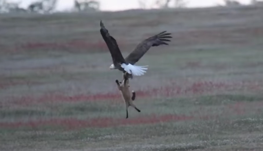 Un renard se fait voler son repas par un rapace