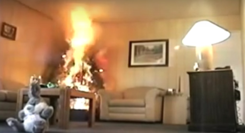Un sapin de Noël prend feu et détruit un salon en une minute