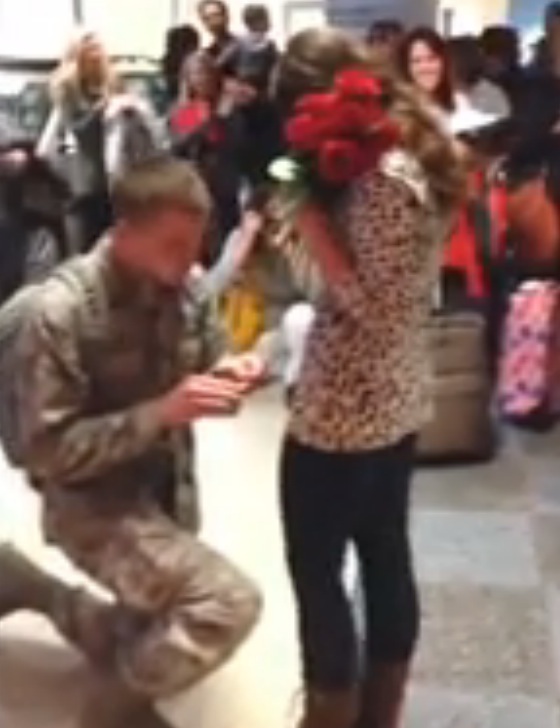 Un soldat rentre de mission et demande sa copine en mariage
