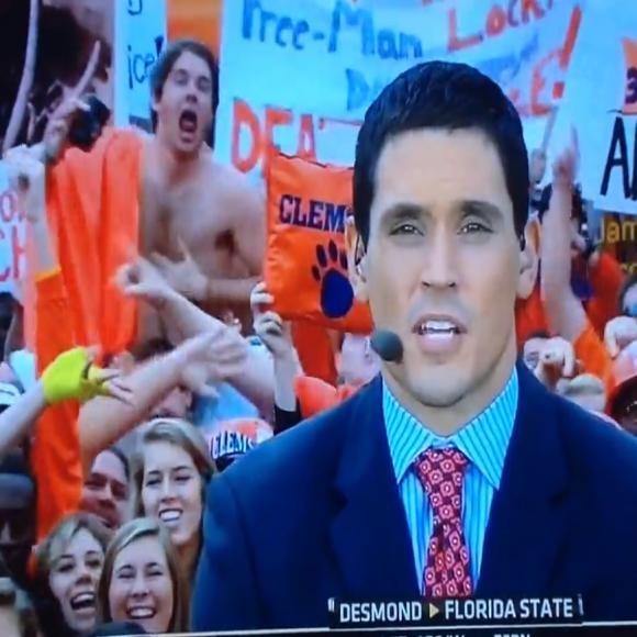 Description : Dans la série "la drogue c'est mal", ce supporter de l'université de Clemson qui va assurer le show derrière un journaliste.