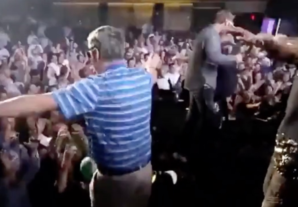 Un vieux de 72 ans tente un slam dans un concert