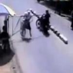 J'adore! Le mec regarde et attend le bon moment pour lui foutre à la gueule au motocycliste!