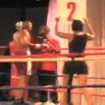 Description : Pendant un match de boxe, en passant sur le ring pour annoncer le round, une pin-up va causer involontairement un sympathique petit "KO".