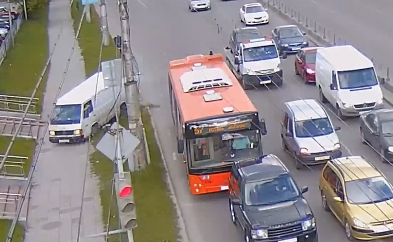 Description : En Russie, pour blesser personne un chauffeur dont la camionnette a perdu les freins, va se retrouver obligé de terminer sa route sur le trottoir.