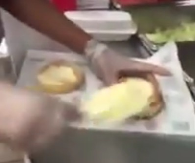 Description : Dans un fastfood une fille aux cuisines va faire volontairement tomber un pain de hamburger, le frotter sur le sol et faire son sandwich avec. Bon appétit !