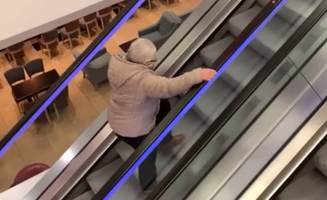 Une femme de 70 ans tente de remonter un escalator pour rejoindre ses enfants
