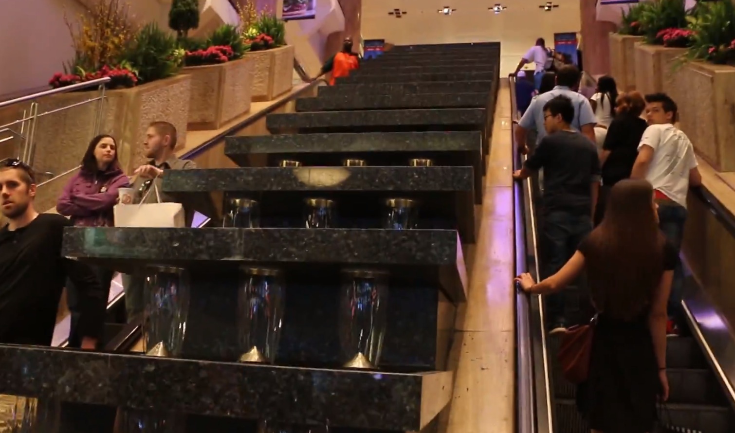 Description : A Chicago au "Water Tower Place", un visiteur nous montre la qualité de la fontaine du gratte ciel. C'est vrai que c'est joli...
