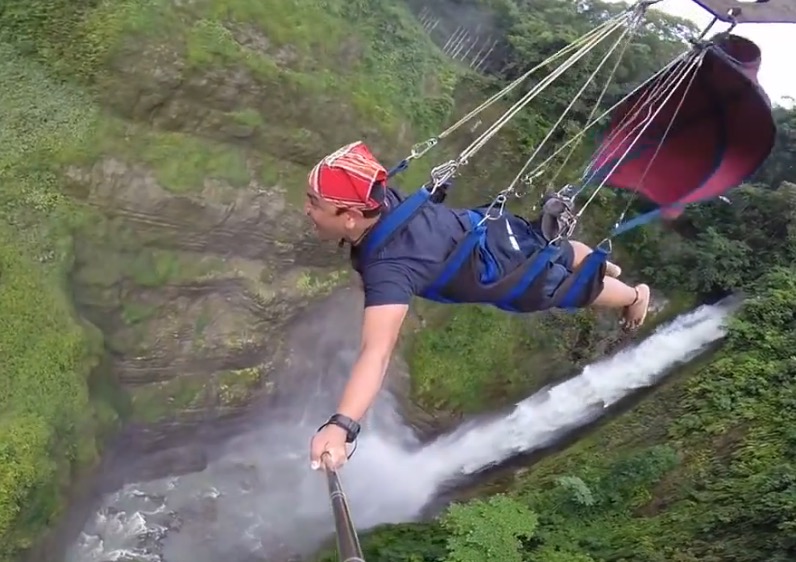 Description : Les images d'une descente sur l'incroyable tyrolienne du lac Sebu aux Philippines.