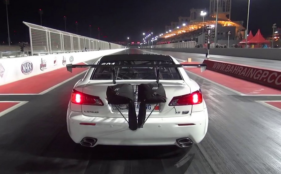Description : Au Drag Racing Championship à Bahreïn, une superbe Lexus ISF Twin Turbo va aller tellement vite qu'elle va s'envoler et passer au-dessus des barrières de sécurité. Le pilote s'en est sorti indemne.