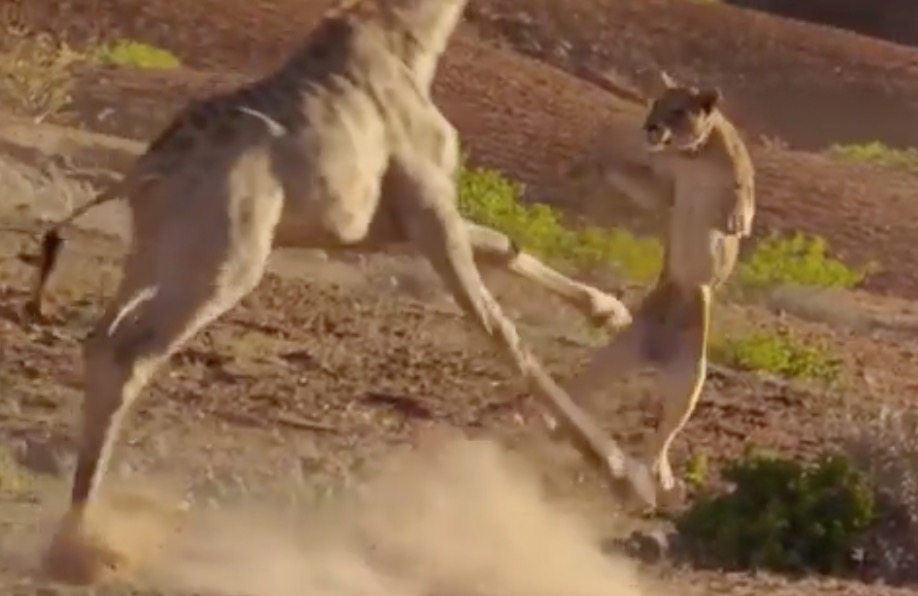 Description : Une lionne décide d'attaquer une girafe mais manque de chance pour elle, la grande demoiselle n'avait pas du tout envie de se laisser faire.